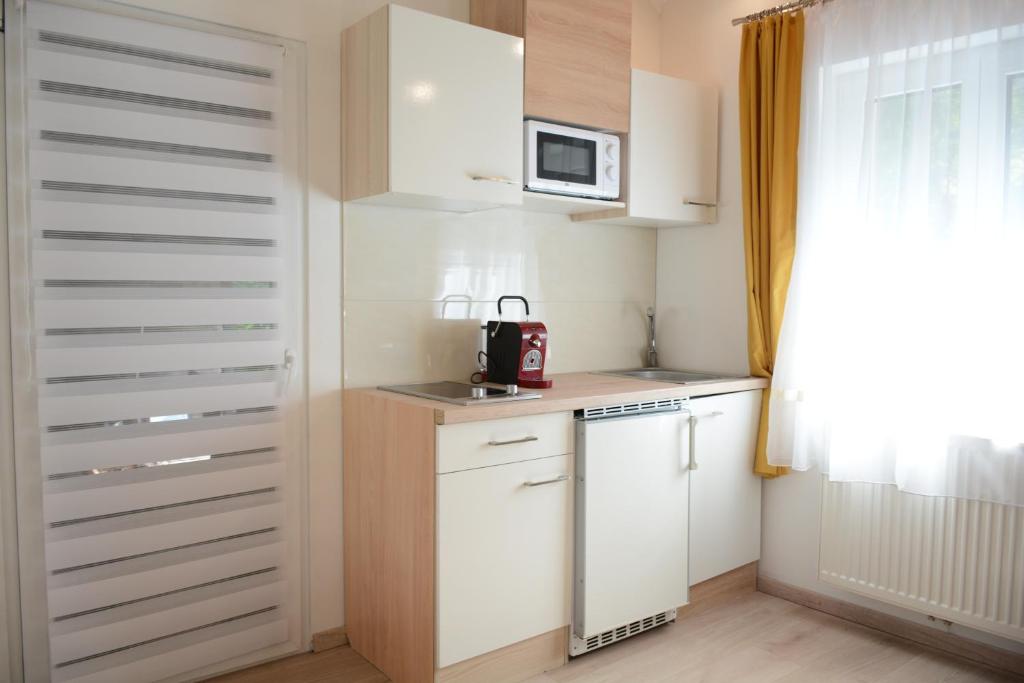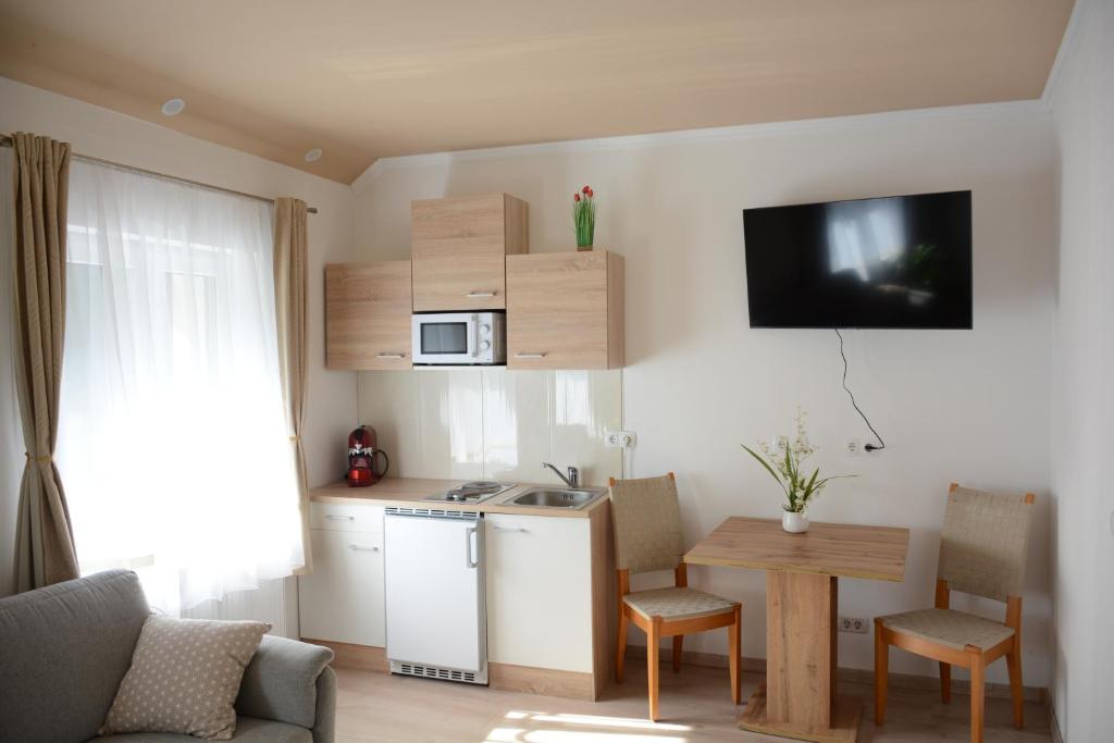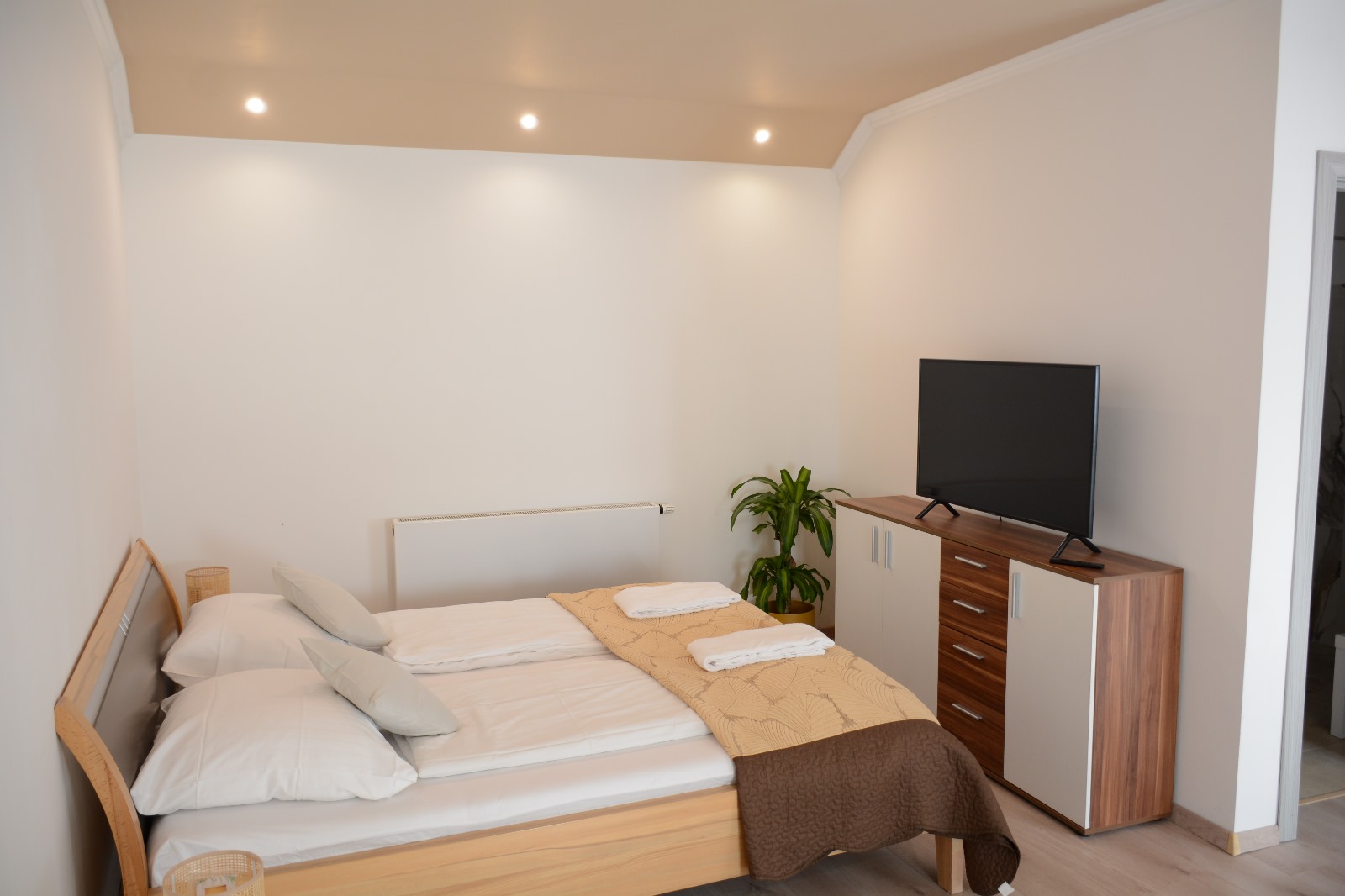 Das Apartment 1 verfügt über ein Schlafzimmer, ein Badezimmer und eine voll ausgestattete Küche, die sowohl zum Kochen als auch zur Lagerung von Lebensmitteln genutzt werden kann. Zudem ist das Apartment mit einem Flachbildfernseher und einem komfortablen Doppelbett ausgestattet, um Ihnen einen angenehmen Aufenthalt zu bieten.