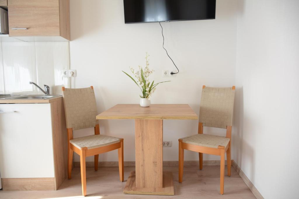 Das Apartment 2 verfügt über ein Schlafzimmer, ein Badezimmer und eine voll ausgestattete Küche, die sowohl zum Kochen als auch zur Aufbewahrung von Lebensmitteln geeignet ist. Das Apartment bietet ein komfortables Doppelbett und ist mit einem Flachbildfernseher für Ihre Unterhaltung ausgestattet.
