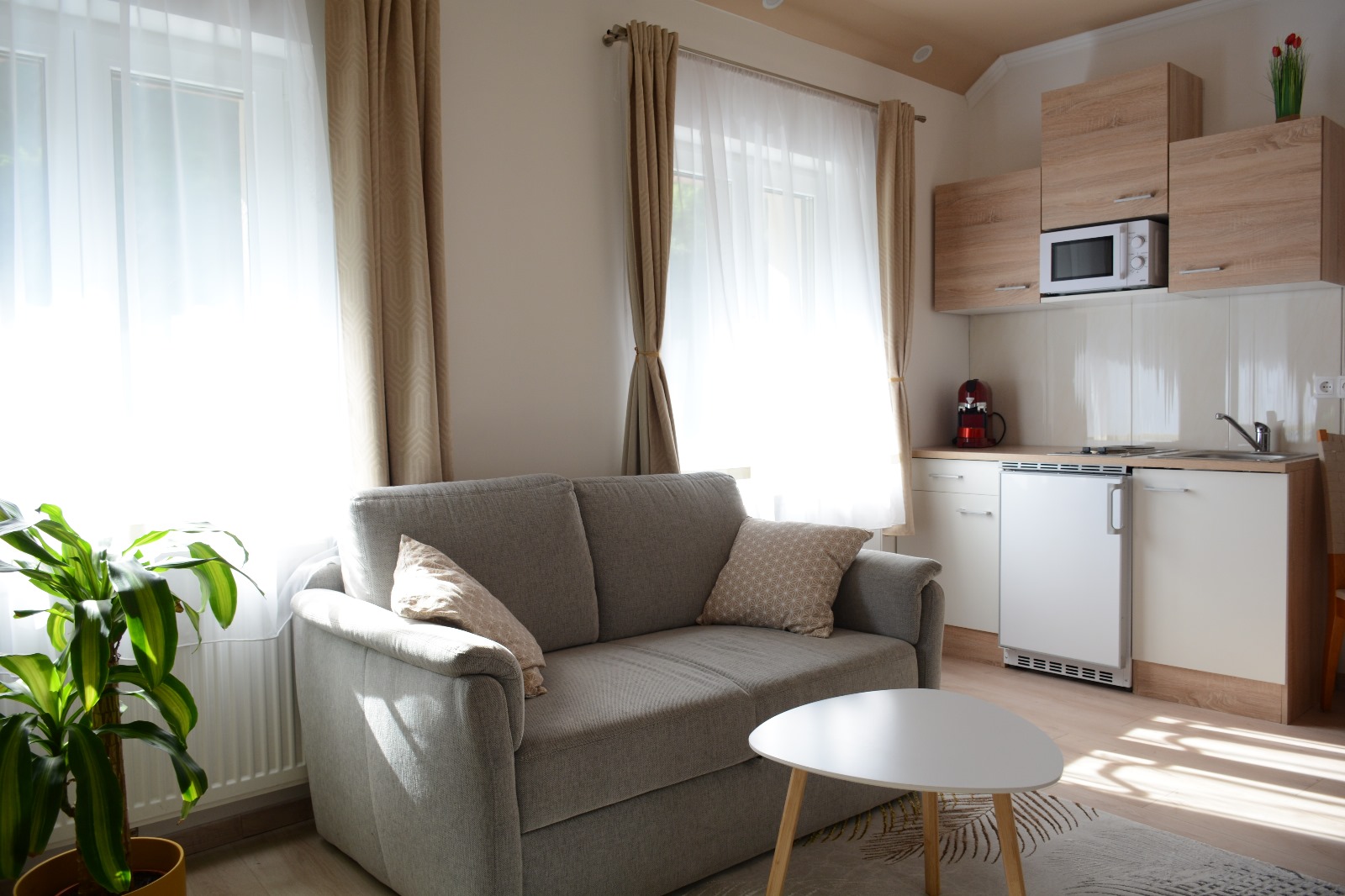 Wählen Sie aus vier Wohneinheiten mit jeweils einem Doppelbett. Alle Apartments sind komfortabel, hell und einladend eingerichtet, um Ihnen einen angenehmen Aufenthalt zu gewährleisten.